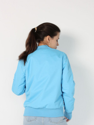 Стильный женский бомбер голубого цвета для осени и весны. Модный и удобный, подходит для различных повседневных образов.