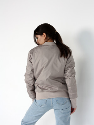 Модный демисезонный женский бомбер в нежном цвете капучино. Создаст стильный образ и подойдет для разных сезонов года